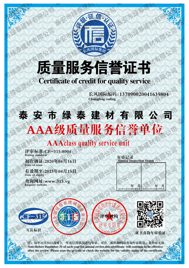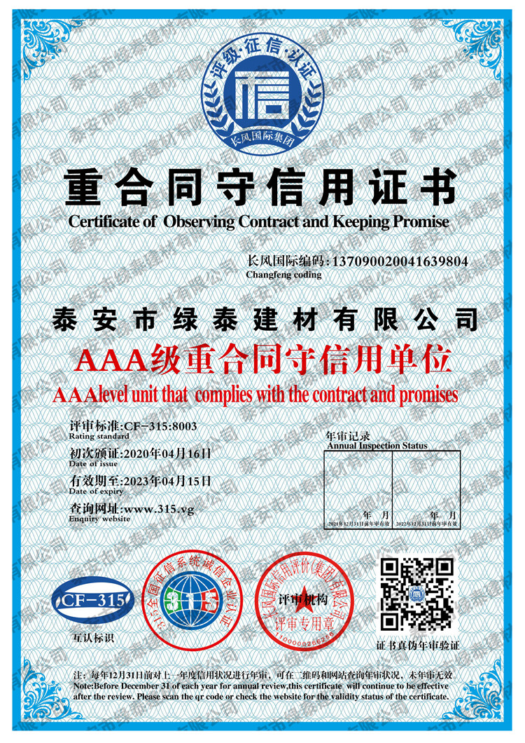 您好,歡迎訪問泰安市綠泰建材有限公司網站,我們將竭誠為您服務!