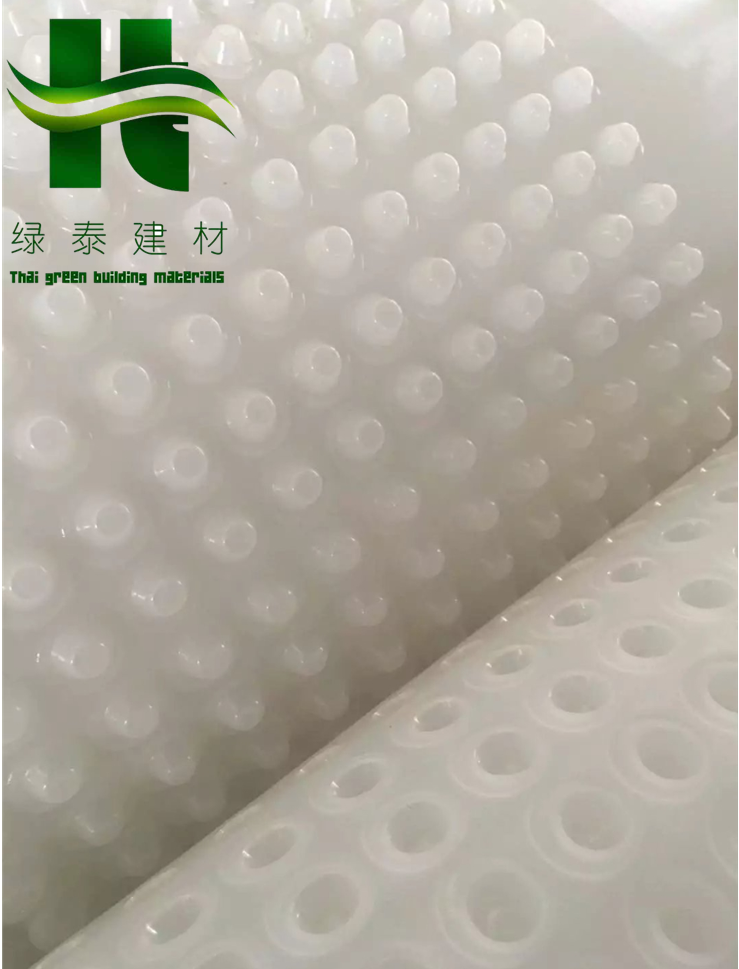 圓錐突臺(tái)的頂面膠接一層過濾土工布,以阻止泥土微粒通過,從而避免排水通道阻塞使孔道排水順暢。 傳統(tǒng)的排水方式使用磚石瓦塊作為導(dǎo)濾層、使用較多的鵝卵石或碎石作為濾水層、將水排到指定地點(diǎn)。而用排水板取代鵝卵石濾水層來排水則省時(shí)、省力又節(jié)能、節(jié)省投資、還能降低建筑物的荷載。